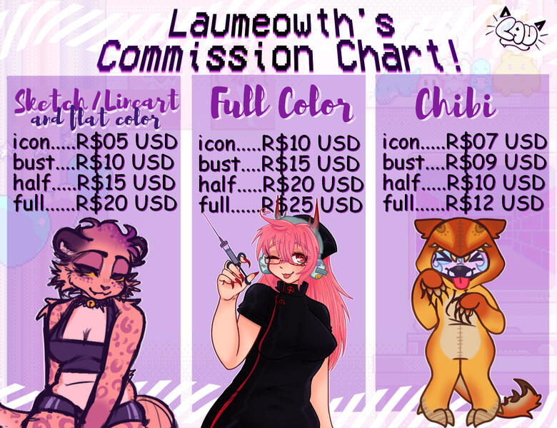 > Max characters per drawing is 4 unless its chibi (max 8 characters)> Additional characters will be charged (ex: two characters hugging eachother counts as 2 characters)> Simple backgrounds (ex: Pattern, solid color, gradient) are free! You can also send me a pic of the background you want> Complex backgrounds such as more than 2 buildings and landscapes are $20 (40R$BRL reais) extra